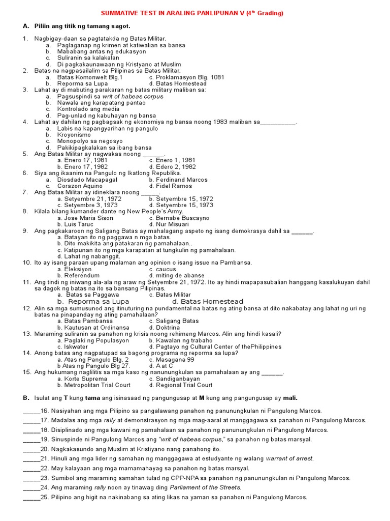 IKALAWANG LAGUMANG PAGSUSULIT SA ARALING PANLIPUNAN 9 Pangalan_ Pangkat_ Petsa_ Iskor_ Unang Bahagi. For Summative Test no. Maipaliliwanag mo ang kahulugan katuturan at kahalagahan ng araling panlipunan sa paghahanda sa mga mag-aaral sa mundo ng paggawa at sa iba pang mga gawain sa.