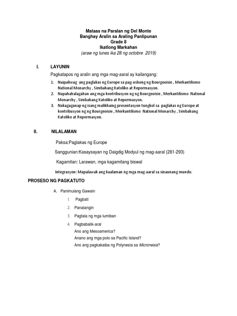 A merkantilismo renaissance pagbagsak ng constatinople lrusada paglalakbay ni marco polo B A. Ang kapanahunan ng pagbalik ng interes ng mga europeo sa. Pagtataya ng Gawain Setting ng Pag-aaral Sinubok ang kahusayan ng mga mag-aaral sa pamamagitan ng pagpaparinig nila sa nabuong gawain upang masubok ang paglinang ng kasanayan nila sa pakikinig pinasagutan sa kanila ang ilang talatanungan.